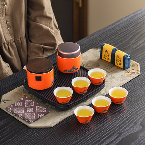 オレンジ Qianli Jiangshan スクエア バッグ セット