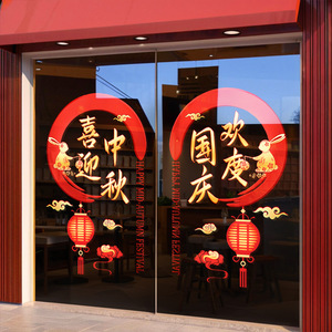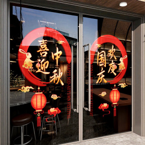 GQUV37国慶節装飾ガラスシールデパートのショーウインドーの祭りの雰囲気に提灯を飾って絵を描く