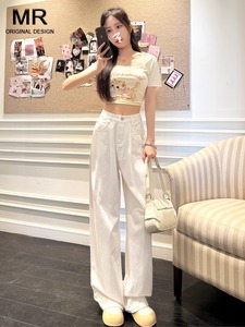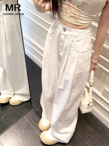 白い三防天糸高腰広脚ジーンズ女2024夏の薄いタイプのゆるい痩せ感ストレートパンツ