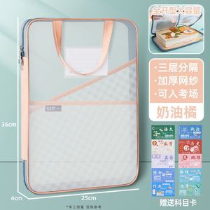 二重ネットバッグL型ファイルバッグジッパー式ナイロンネットバッグ学生用科目ネットバッグファイル整理分類