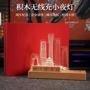 フリップキューブカレンダーと携帯電話ワイヤレス充電器を備えた多機能ギフトナイトライト、ビジネスクリエイティブ記念日ギフト