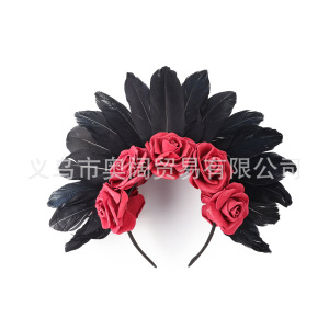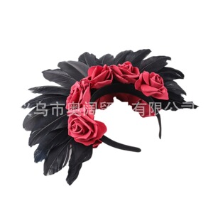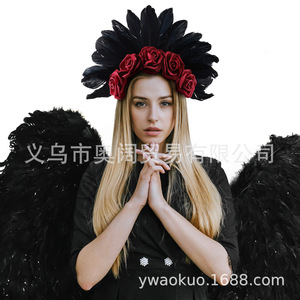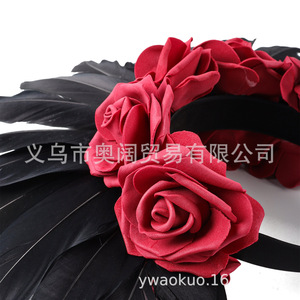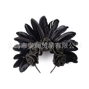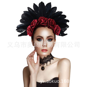 国境を越えた欧米のハロウィーン暗黒花嫁の頭のバンドパーティーの舞踏会の演技は花の羽のカチューシャの髪飾りをシミュレートします