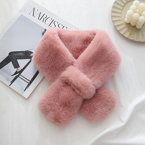 純色の毛のマフラーの女性の冬の柔らかい韓国版のかわいい少女のぬいぐるみのマフラーの保温insはウサギの毛の襟をまねます。