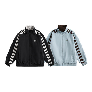 启林の両面にはサイドストライププリントコートを着ています。
