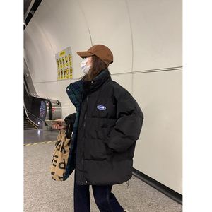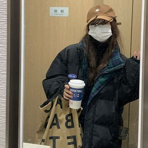 2025 秋冬香港スタイルパンコート綿コートルーズ綿ジャケットレトロ市松模様小厚手の綿コートジャケット女性