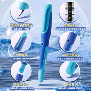 晨光优渥钢笔EF尖热可擦钢笔学生练字用正姿钢笔晶蓝摩易擦P2197