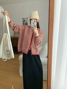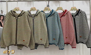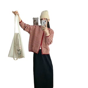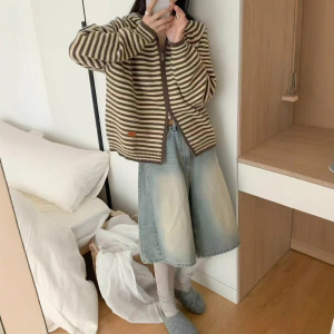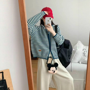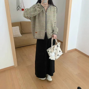 リアルショットストライプジッパーフード付きセータージャケット韓国スタイルルーズレイジースタイルカジュアル大きいサイズセータージャケット女性用
