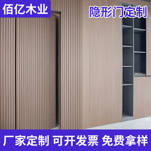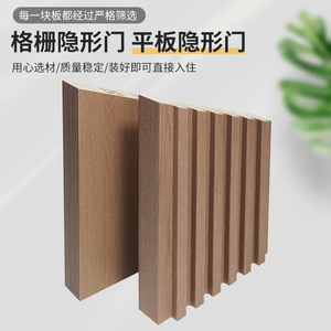 カスタマイズされたグリル隠しドアの加工、屋内無垢材背景壁、リビングルームドア、一体型隠し寝室玄関ドア