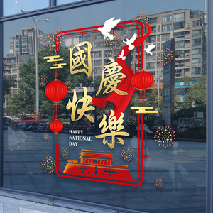 GQUV10国慶節の楽しい静電はショーウインドーのガラスのドアのステッカーの窓のドアのシーンを飾って窓の花を配置します。