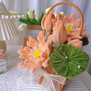ツイストスティックフラワーバスケット【ウォームピンク中華風蓮】素材パッケージ一式