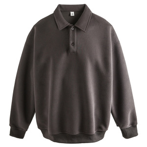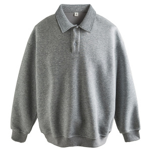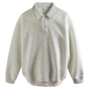 启林400g重ポンド衛衣男秋潮牌insゆるい襟ジャケットシンプルpoloシャツ長袖グレー