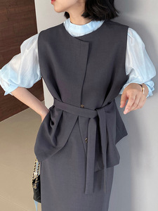 Jiangzuo 韓国版高品質スリムスーツスーツノースリーブベスト + スカート女性の秋ベルト 1192