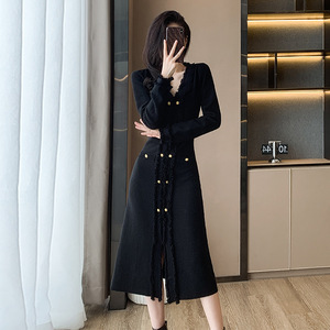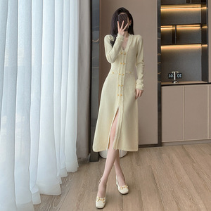 7215実写スポットの毛磨きニットワンピース女性vネックが痩せて見えるニットスカートの中の長さは底をつけて秋になる