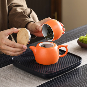 オレンジ西師ポット ティー缶 スクエアバッグセット