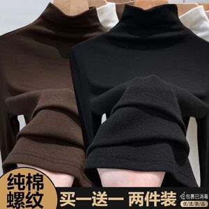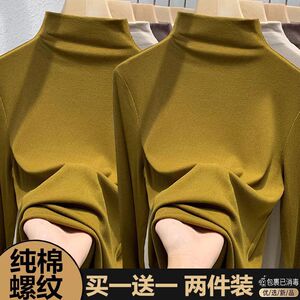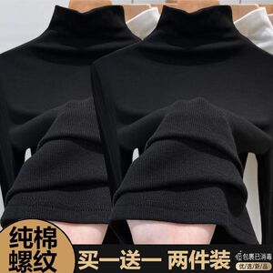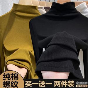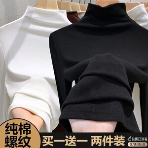 シングル/二枚のネジの半高襟の純綿の底のシャツの女性の秋冬の新型の中で身を修める長袖のtシャツの女性の上着を掛けます。