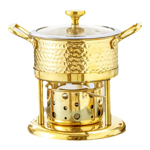 304三層鋼槌目ナチュラルカラーガラス蓋小鍋(環境に優しいオイルモデル+ランプカップ)(電池寿命120分)