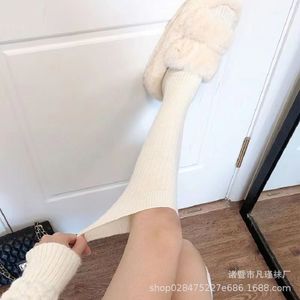 ふくらはぎソックスレディースギャル膝丈ストッキング秋冬甘辛ins純色ベージュ日系ブーツソックス防寒