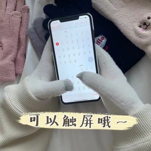 秋冬用女性用暖かい学生用手袋、厚手、サイクリング用、五本指、防寒、タッチスクリーン対応、綿手袋、保護、可愛い、大人用