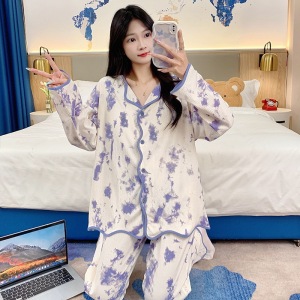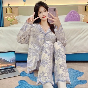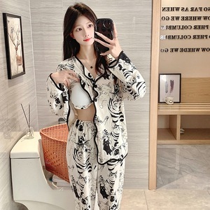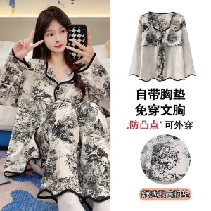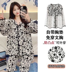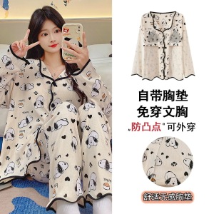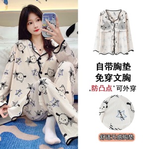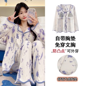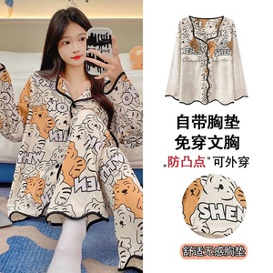 2025 新しいパジャマ女性のための春と秋の長袖カーディガンクラウドコットンレディースホームウェアセット胸パッド付き屋外で着用可能