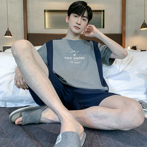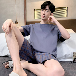 パジャマ男の夏の半袖半ズボン綿質青少年中学生スーツ男の家服デブ4XL