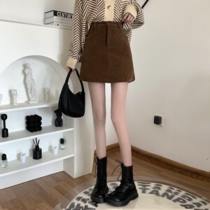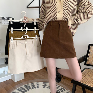 秋のカレー色の半身のスカートの女性の大きいサイズの太っているmmのコーデュロイのスカート