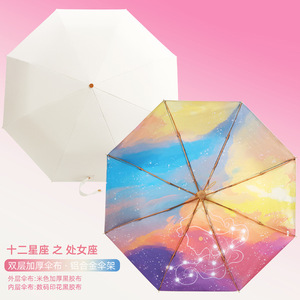 星座の傘の二重の日焼け止めの厚い補強アルミニウム合金の折り畳みの晴雨の両用の日よけは紫外線の日傘を防ぎます。