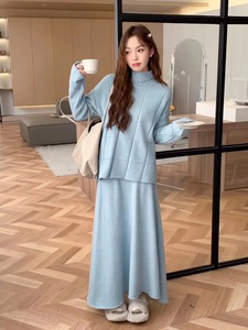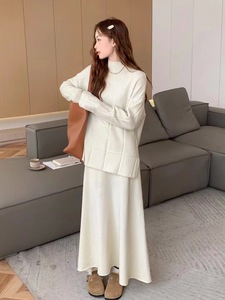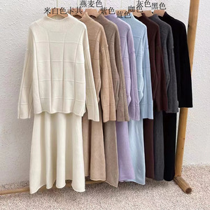 2025年秋冬新作ニットセーターセット、トップスとスカートのツーピース、おしゃれなセーターセット、女性向けトレンド