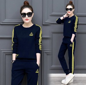 2025 春と秋の新韓国スタイル大きいサイズカジュアルスポーツスーツ女性の痩身ランニング服長袖トレーナー 2 点セット