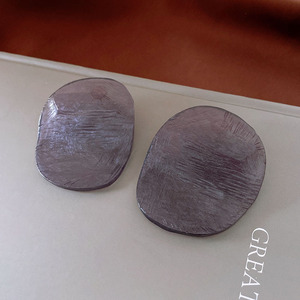 37#シルバー ニードル パープル レジン オーバル スタッド ピアス