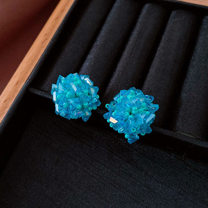 39#シルバー ニードル ブルー ガラス クリスタル ライス ビーズ フラワー クラスター スタッド ピアス