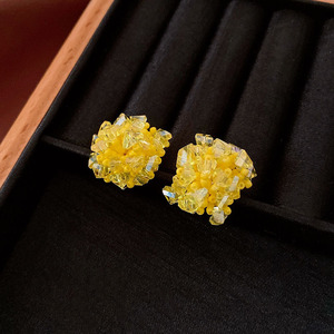 28#シルバー ニードル イエロー ガラス ビーズ ライス ビーズ フラワー クラスター ラウンド スタッド ピアス