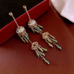 11#スチール ニードル ブルー パール ジルコン タッセル スタッド ピアス