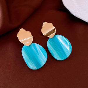 17#シルバーニードルブルー樹脂スプレーペイントフラワーテクスチャイヤリング