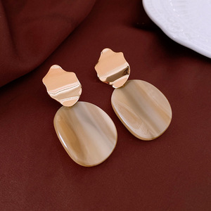 29#シルバーニードルブラウン不規則なオーバルスタッドピアス