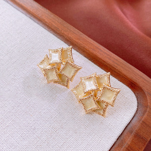 33#シルバー ニードル ゴールド ダブル スクエア オイル ドロップ スタッド ピアス