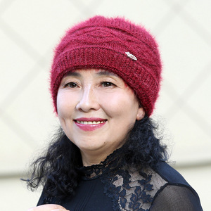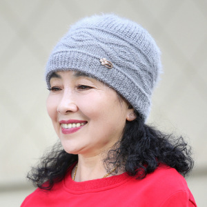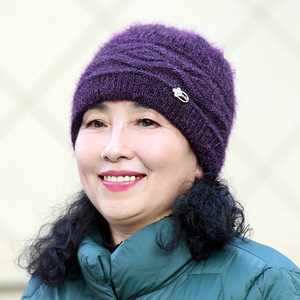 冬の中高年帽子の女性とベルベットは保温ニット毛糸帽のおばあちゃんの防寒に合わせてお母さんの帽子を厚くした