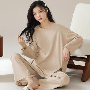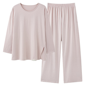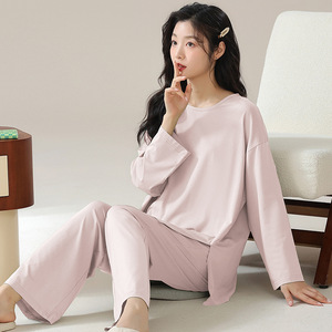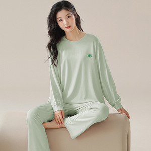 パジャマの女性の秋の柔らかいモーデール春秋は胸パッドの長袖のスーツの純色を持っています。