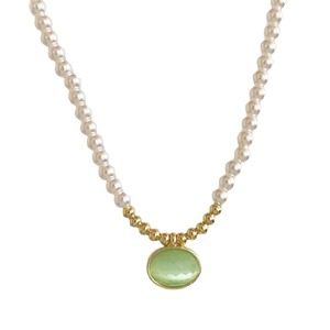 hw-グリーン オーバル キャッツアイ パール ネックレス
