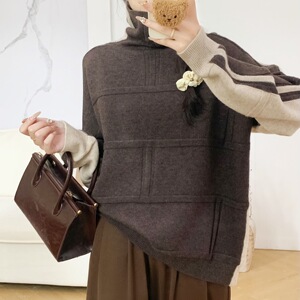 2025年越境アマゾン向け、柔らかく滑らかなハーフタートルネックの新作セーター、厚手でミドル丈のゆったりとしたプルオーバーニット(女性用)