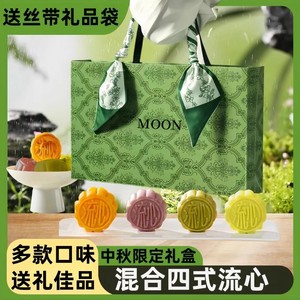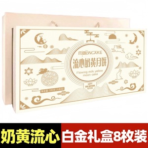 广式流心奶黄月饼发团中秋节礼盒装送长辈家直发批购LOGO定 制厂