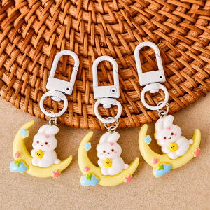 漫画の月のウサギのキーホルダーの学生のかわいいカバンのペンダントの中秋節の佳節の奨励の贈り物