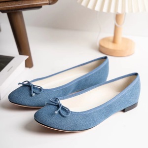 莞産のレトロな高品質の新型の優雅なファッションの靴の丸い頭の浅い口の蝶結びの平底の漆のバレエの靴