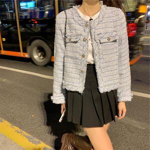 官図の白いショートコートの女性デザイン感秋の新型の小香風フランスの名媛感気質上着