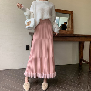 韓系はミンクの毛の半身のスカートの女性を模倣します。