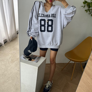 韓国の東大門秋冬新作、韓国風のゆったりとしたミドル丈のゆったりとした体型に優しいVネックのレタープリントスウェットシャツ