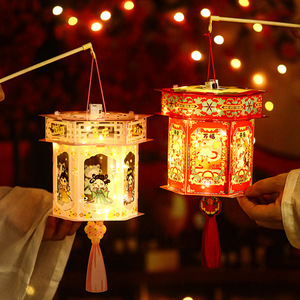 中秋節提灯 2025年新作 手作りDIY素材パック 子供用持ち運び可能な光る古風宮殿提灯 卸売