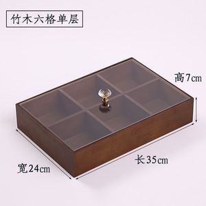 新しい中国式のキャンディーの箱の家庭用の間食の収納箱の客間のお茶のいくつかのお菓子は皿の4格の竹の木の乾燥している果物の箱を並べます。