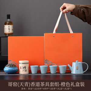 影青縁起ポット白檀セット-オレンジギフトボックス