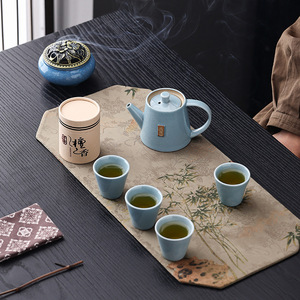 影青縁起ポット白檀セット-ブルーギフトボックス