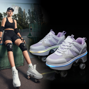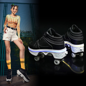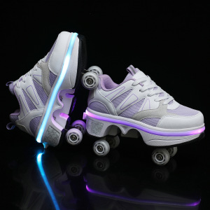 メーカークロスボーダーメンズと子供用変形スケートシューズ、女性用ローラースケート発光シューズ、格納式四輪ホイール